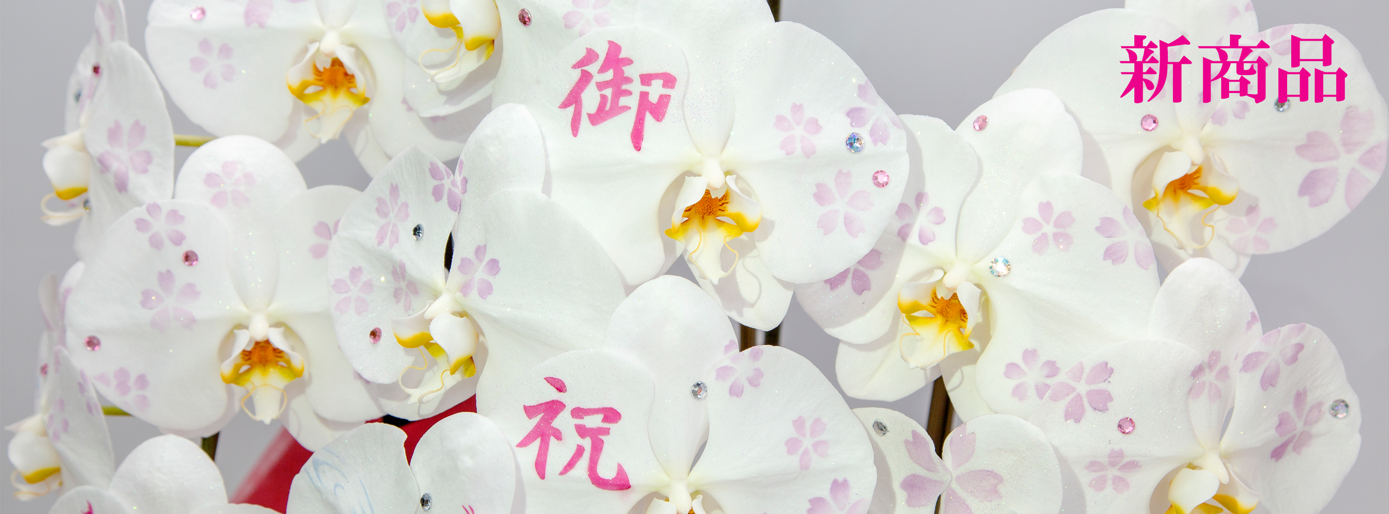 化粧蘭(花びらに絵や文字が描かれた胡蝶蘭)の販売開始致しました。